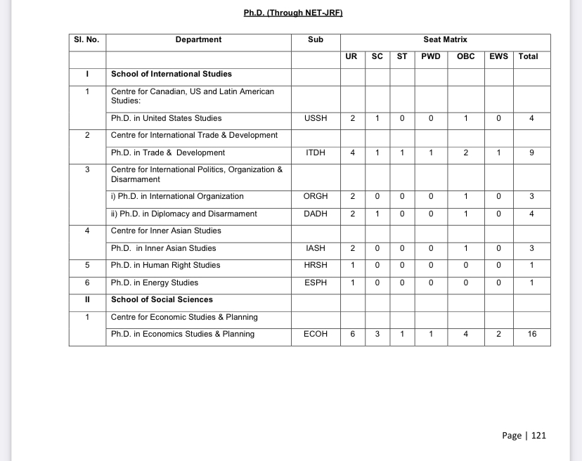 Citing an example, Ghosh said that the Centre for Study of Law and Governance released 19 seats for admissions and all are reserved for NET JRF qualified candidates. A summary look at the prospectus suggests that at least four centres -- Centre for Women Studies, Centre for Indian Languages, Centre for Studies in Law and Governance and PhD in Engineering -- have been largely affected.
